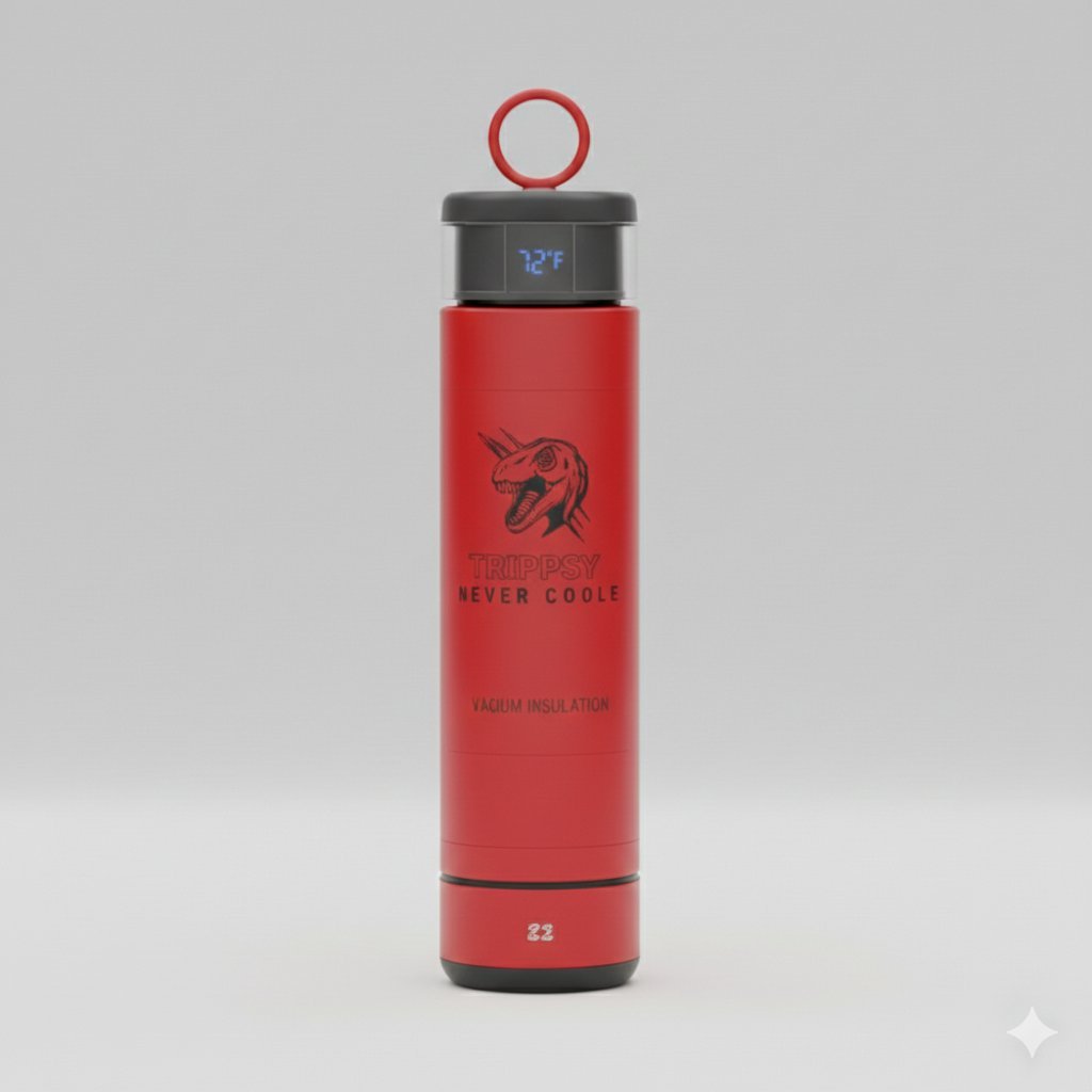 : A premium, insulated water bottle with a detachable Bluetooth LED Speaker, a Magnetic Wireless Power Bank, and advanced safety features.